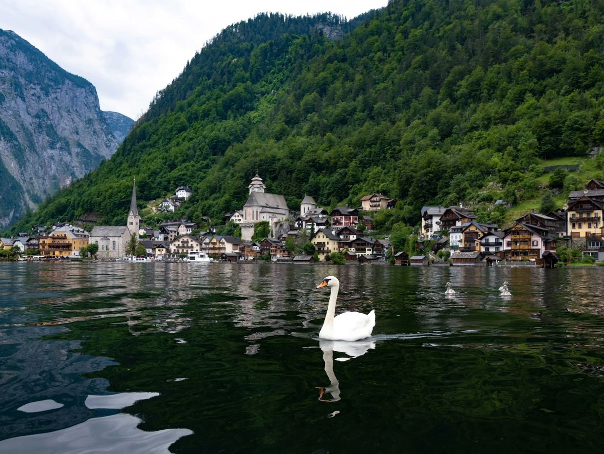 his classic tale, “The Ugly Duckling.” Swans symbolize introspection, tranquility, and transformation universally. A few swans grace this island, and the bountiful and pristine water flows from the Danube River into Lake Hallstatt.